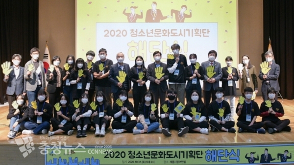 세종특별자치시(시장 이춘희)가 청소년들의 문화기획역량을 높이기 위해 출범한 ‘2020 청소년문화도시기획단(2기)’이 지난 31일 시청 여민실에서 해단식을 갖고 올해 활동을 마무리했다.
