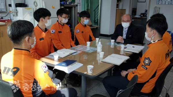 이번 순회교육은 코로나19 방역지침과 교대근무를 하는 소방공무원의 근무여건을 고려하여 김오식 당진소방서장이 직접 각 119안전센터와 구조구급센터를 순회하며 진행하고 있다.