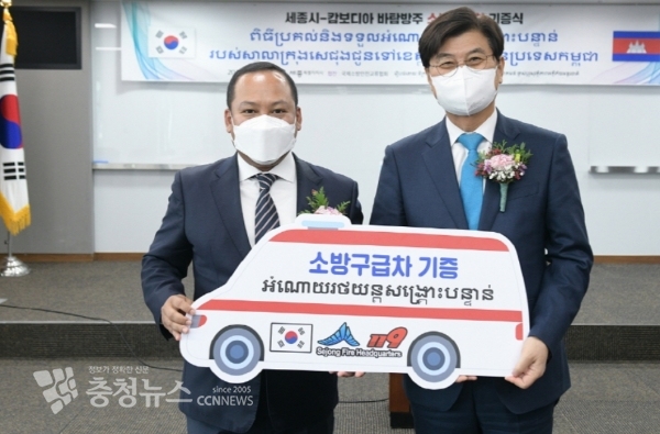 이춘희 시장은 “이번 소방구급차 기증을 시작으로 캄보디아 바탐방주의 의료환경 개선 및 소방서비스 향상을 위해 지속적인 협력을 해나갈 계획”이라며 “글로벌 도시를 지향하는 세종시가 정부의 신남방정책에 적극 참여하고, 한국-캄보디아 양국의 가교 역할을 할 수 있길 바란다”고 말했다.