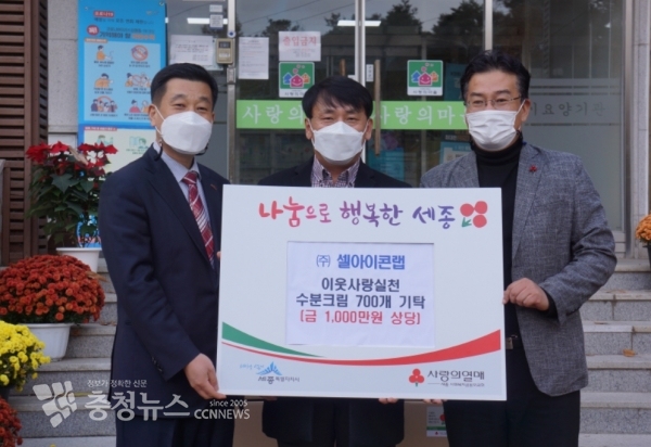 세종사회복지공동모금회(회장 홍영섭)는 4일, (주)셀아이콘랩(대표 성민규)이 이웃사랑 실천을 위해 세종시 노인복지협회(회장 구본천)에 1000만원 상당의 수분크림 700개를 전달했다.