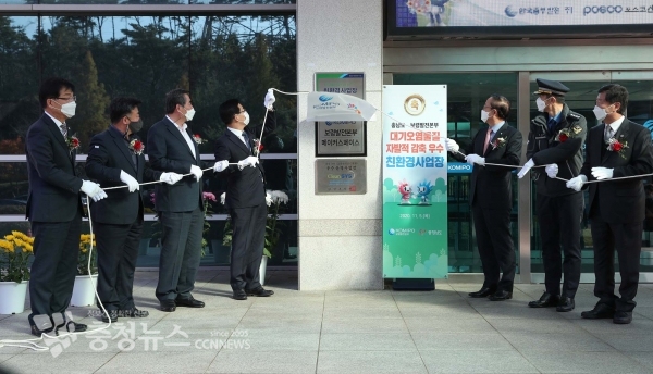양승조 지사와 박형구 중부발전 사장 등 50여명이 참석한 가운데 열린 이날 행사는 경과보고와 양 지사 축사, 현판 제막, AMP 준공 테이프 커팅 등의 순으로 진행했다.