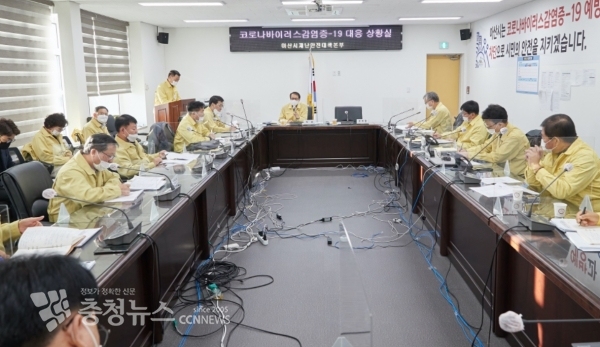 아산시(시장 오세현)는 8일 보건소 대회의실에서 윤찬수 부시장 주재로 ‘재난안전대책본부 회의’를 개최했다.