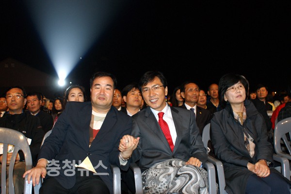 ▲ 2010세계대백제전, 공주 고마나루 예술마당 폐막식 이용우 부여군수와 이준원 공주시장