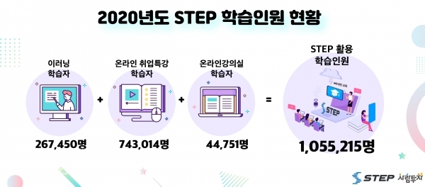 한국기술교육대학교(총장 이성기) 온라인평생교육원(원장 임경화)은 고용노동부와 함께 운영하는 스마트 직업훈련플랫폼 STEP(Smart Training Education Platform)을 활용한 학습인원이 100만 명(2020년 1월 ~ 10월말 기준)을 돌파해 역대 최대 수치를 기록했다.
