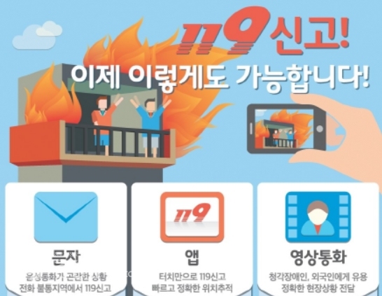 문자신고의 경우 119 번호로 문자 입력 후 전송하면 신고가 접수되며 사진과 동영상도 첨부할 수 있다.