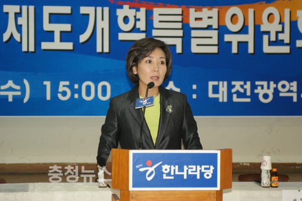 나경원 최고위원은 인사말을 통해 "공청회를 대전에서 제일 먼저 개최하게 된 것은 그래도 연고지역이라 했다"고 말하며 "대전.충청권 지역은 앞으로 한나라당이 더 많은 관심을 가져야 하는 지역이며 지금이 그 때라고 생각한다"고 말했다.