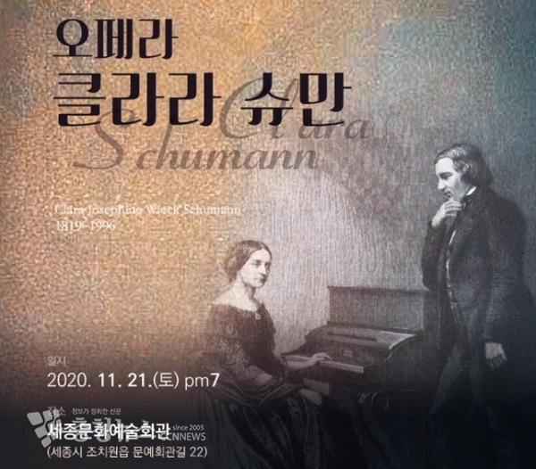 세종시에 활동하는 한음오페라단이 21일(토) 오후7시 세종문화예술회관에서 창작공연 오페라 ’클라라 슈만‘를 선보인다.