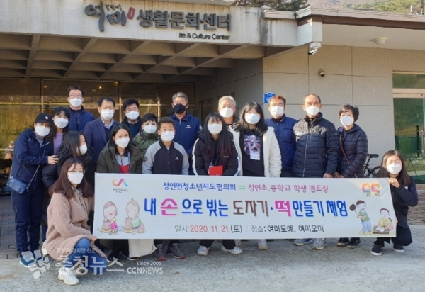 행사에는 지도위원 10명과 성연초·중학교 학생 10명, 성연면 직원 5명 등 25명이 참여해 도자기 만들기와 떡 만들기 체험을 했다.