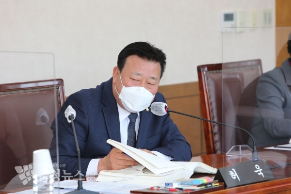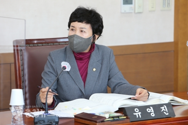 ▲유영진 부위원장은 월례모임 운영과 관련하여 강사수당 등을 확인하고, 직원 포상 현황을 점검했다. 세정과 행감에서 체납현황 확인하고 세수에 차질이 없도록 고액체납자 관리를 철저히 할 것을 주문했다.