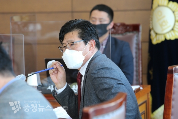 ▲유영채 의원은 행정지원과 인사 업무와 관련하여 "우수공무원이나 기업투자유치 등 천안시발전에 기여한 직원에 대한 특별승진이나 연수 등을 추진해줄 것"을 요구했다.