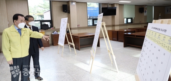 김지철 충남교육감은 2일 대학수학능력시험이 치뤄질 시험지구 상황실 및 시험장 학교를 방문해 수능 준비상황, 방역대비 상황을 최종 점검했다.