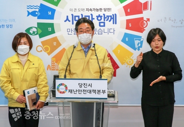 김홍장 당진시장은 “사회적 거리두기 1.5단계로 격상하여 100인 이상 집합・모임・행사를 금지하였다”고 강조했다.
