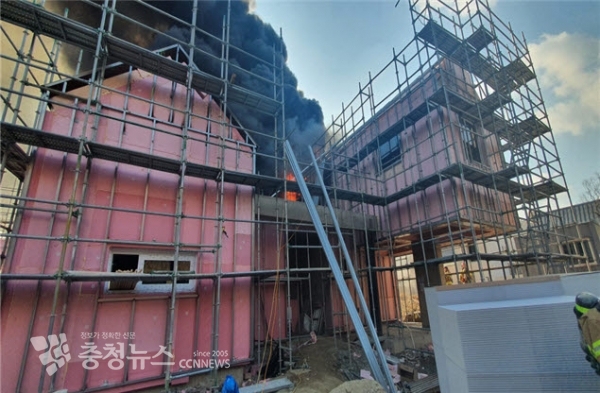 신고자(임○○,남,52년생)는 차를 타고 가던 중 어진동 단독주택 공사현장 2층 외벽에서 화재를 목격하고 신고했다.