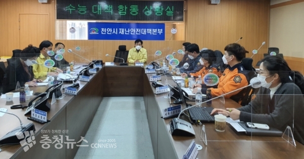 천안시가 3일 '2021학년도 대학수학능력시험대비 종합상황실'을 운영하여 수험생 편의를 제공에 앞장서 응시생들로 부터 ‘큰 호응’을 얻었다.
