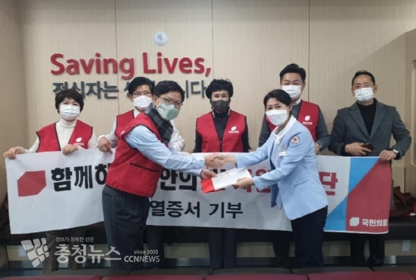 국민의힘 천안을 당협위원회(위원장 이정만) 자원봉사단인 `함께하는 천안의힘! 자원봉사단(단장 정도희 시의회 부의장)은  7일 헌혈 봉사 및 111장의 헌혈증서 기부행사를 가졌다.