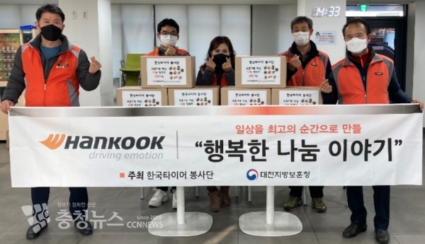 한국타이어 봉사단, 행복한 반찬 나눔 이야기 한국타이어 봉사단(회장 김홍렬)은 8일 대전시 대덕구 소재 보훈대상 독거노인 10여 가정을 방문하여 밑반찬을 전달하고 비대면으로 반찬을 전달해드리는 ‘행복한 반찬 나눔 이야기’ 봉사활동을 진행했다. 저작권자 © 충청뉴스 무단전재 및 재배포 금지 최형순 기자 다른기사 보기 기사가 마음에 드셨나요? 충청뉴스 좋은 기사 후원하기 1,000원 3,000원 5,000원 10,000원 30,000원 50,000원 직접입력 비회원 약관동의하기 ※ 소중한 후원금은 더 좋은 기사를 만드는데 쓰겠습니다.