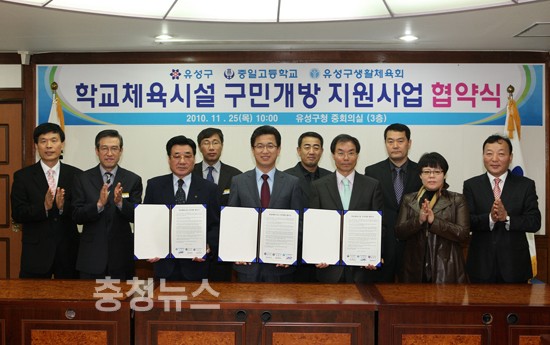 협약은 유성구, 중일고교, 유성구생활체육회 등 3자간 협약으로 학교운동장 및 부대시설에 대해 학교수업에 지장을 초래하지 않는 범위 내에서 개방하되 개방시설의 관리운영은 생활체육협의회에서 종목별 동호회와 연계하여 운영해 나간다는 방침이다.