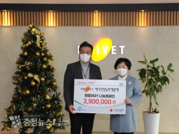 23일 세종사회복지공동모금회(회장 홍영섭, 이하 세종모금회)에서 진행하는 ‘희망 2021나눔캠페인’에 한국직업능력개발원(원장 나영선)이 390만원의 성금을 전달하며 동참했다.