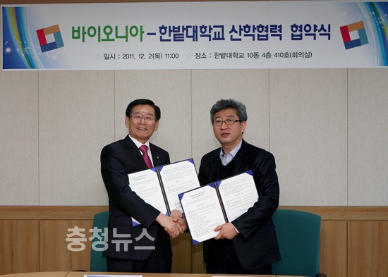 산학협력협약은 한밭대가 추진하는 생명공학분야 신기술 개발을 위한 공동사업을 추진하고 양기관의 시너지효과 창출하기 위해서이다.