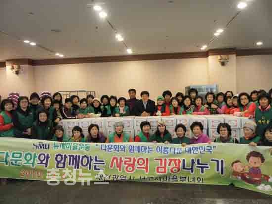 새마을운동대전광역시서구지회(지회장:이의돈)는 서구새마을부녀회(회장 이선옥)주관으로 12월6일과 7일 양일간 다문화이주여성과 새마을부녀회원 100여명이 참여한 가운데 둔산동 오페라웨딩홀에서 “다문화와 함께하는 사랑의 김장나누기” 행사를 개최했다.