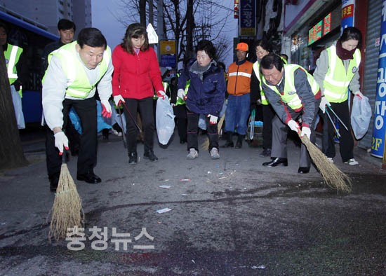 염홍철 대전시장은 8일 아침 오류동 음식특화거리 주변에서 대전시 간부공무원과 시민이 함께하는 거리청소에 나섰다.