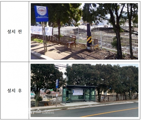 통학로 노후 가로등 등 즉시 가능한 사항은 신속하게 조치하였고, 특히, 불편사항 해소를 위해 가장 어려웠던 요인인 사유지에 대한 토지사용 건에 대해 북일학원에서 흔쾌히 승낙함으로 지난 12월에 유개버스승강장을 설치 완료하여 학생들에게 있어 가장 큰 불편요인을 해결하였다.