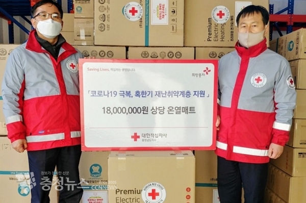 대한적십자사 충남지사 한파취약 400세대에 온열매트 지원