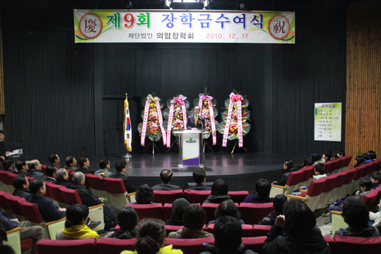 의암장학회(이사장 심대평 국회의원) 2010년도 장학금 전달식이 17일 공주문예회관에서 개최됐다.