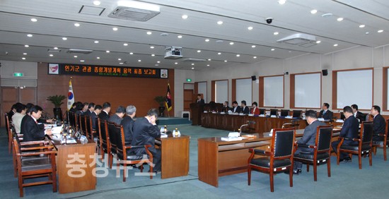 충청남도 연기군 관광종합개발계획수립용역 최종보고회가 16일 군청 대강당에서 유한식 연기군수와 군의원, 실과소장 및 읍‧면장 등 40여명이 참석한 가운데 개최됐다.