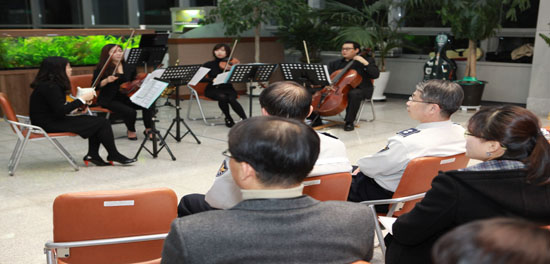 대전지방경찰청 (청장 김학배)은 친서민 치안정책 일환으로 사회적 약자를 배려하는 경찰상 구현을 위해 경찰청 1층 로비에서 청장, 차장 및 지방청 신우회 회원 25명이 참석한 가운데'천사나무 돕기 성탄음악회'를 열었다.