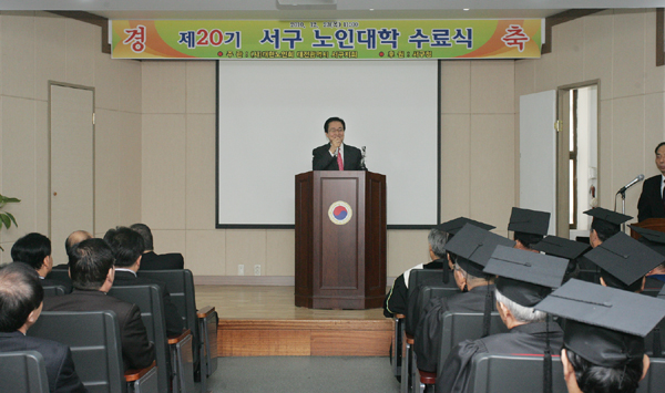 (사)대한노인회 대전서구지회(회장 권병기)는 23일 갈마동 서구노인지회 회의실에서 수료생과 관계자 등 100여명이 참석한 가운데 제20회 노인대학 수료식을 가졌다.