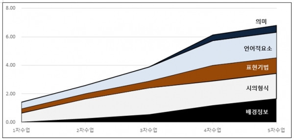 원 교수와 윤 교수는 영미시 배경 정보, 시의 형식, 표현기법, 언어적 요소, 의미 등 5가지 영미시 이해도 기준(24점 만점)을 만들어 수업마다 학생들이 제출한 과제를 평가했다. 그 결과 1주차 수업 9.26점, 2주차 수업 11.35점, 3주차 수업 13.49점, 4주차 수업 16.16점 등 영미시 이해도 점수가 지속적으로 향상됐다.