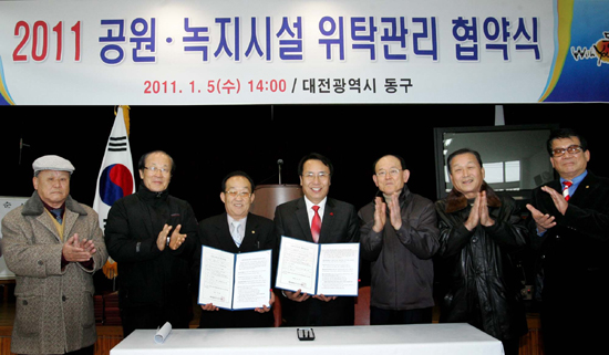 대전시 동구(구청장 한현택)는 5일 대한노인회 동구지회에서 공원녹지시설 위탁관리 협약식을 개최했다.