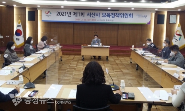 서산시(시장 맹정호)는 26일 시청 중회의실에서 2021년 제1회 서산시보육정책위원회(위원장 이창식)를 열고 어린이집 수급 계획 및 국공립 어린이집 설치 계획을 심의·의결했다.