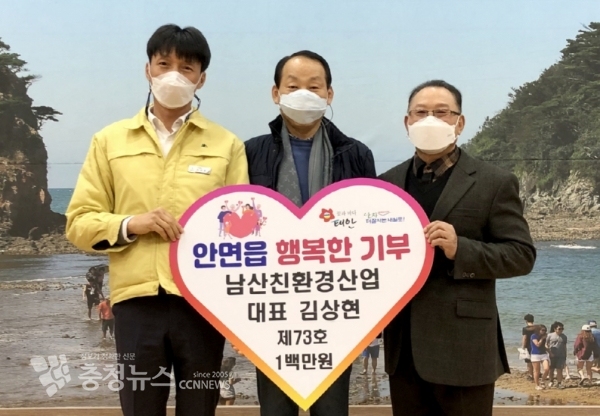‘남산친환경산업(대표 김상현)’이 지난 26일 안면읍지역사회보장협의체가 추진하는 ‘안면읍 행복한 기부’에 100만 원을 기탁했다.