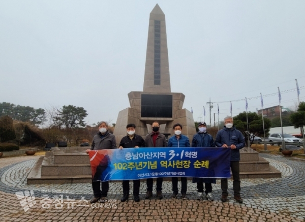 3.1운동100주년기념사업아산시추진위원회(이하 추진위원회)가 주관하고 정해곤 상임대표 등 10여명의 추진위원회 임원 및 아산시민사회단체협의회 관계자들이 참여한 가운데 진행된 행사는 신정호에 마련된 항일민족운동자료전시관에서 아산지역 3.1운동의 역사를 둘러보고 무인멸왜운동기념탑에서 민족의 독립을 위해 순국하신 영령들을 추모하는 참배 순서로 마무리됐다.