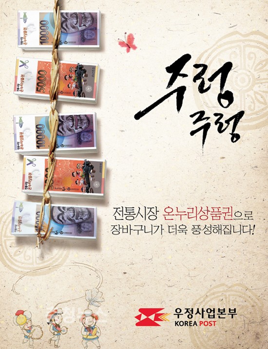 충청체신청(청장 이상진)은 설 명절을 맞아 전통시장 활성화를 위해 온누리상품권을 우체국에서 판매한다고 17일 밝혔다.