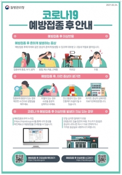 아산시 보건소는 “예방접종 후 접종부위통증·부기·발적, 발열, 메스꺼움, 근육통, 피로감, 두통 등은 흔하게 발생하는 증상”이라면서 “대부분 2~3일 내에 저절로 좋아진다”고 설명했다.