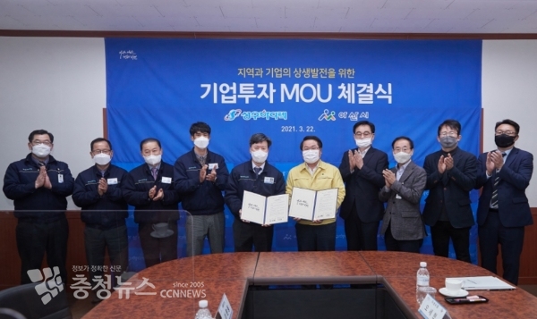 오세현 아산시장이 22일 ㈜아산성우하이텍을 방문해 기업관계자와 근로자를 격려하고 투자 MOU를 체결했다.