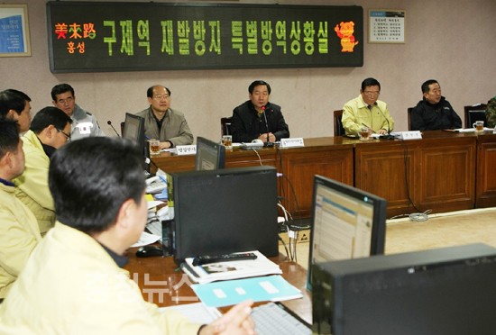 유정복 농식품부장관은 23일 충남 홍성·예산·천안 구제역 및 AI 방역 현장 방문, 직원들을 격려하고 방역에 전력을 다해 줄 것을 주문했다.