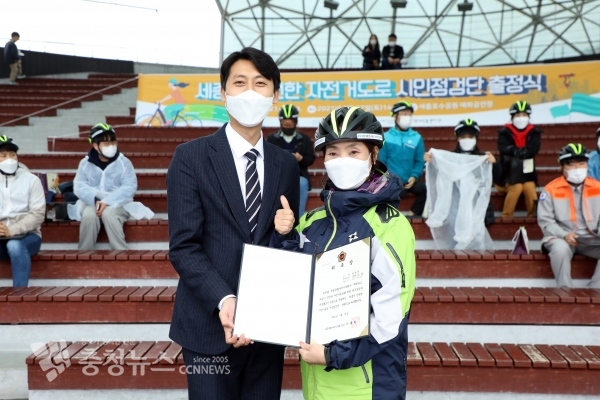 손인수 의원 등 ‘세종시 안전한 자전거도로를 위한 연구모임’ 회원들이 참석해 시민점검단 창단을 축하했다. 연구모임은 미래 세대를 위한 자전거 인프라 확충 등 정책 대안을 제시하기 위해 전문가와 시민들의 의견을 수렴하는 등 활동을 이어가고 있다.