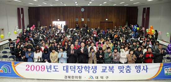 ▲ 2009년 2월 대덕구청 대강당에서 교복전달 기념