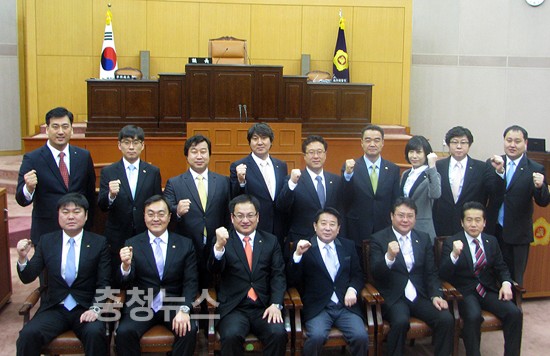 ▲ 이상태 의장과 이종복 회장 등 임원진들이 과학벨트 충청권 입지 투쟁의지를 밝혔다