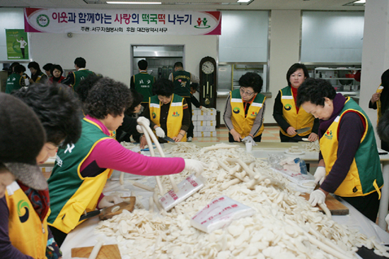 대전시 서구(구청장 박환용)는 우리민족 최대의 명절인 설을 앞두고 26일 구청 지하 후생관에서 어려운 이웃과 함께하는 ‘사랑의 떡국떡 나누기’ 행사를 가졌다.