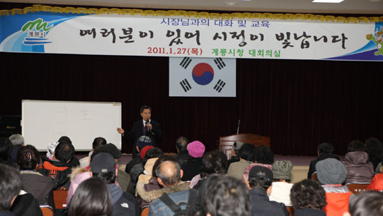 이기원 시장은 시를 위해 헌신적인 노력을 아끼지 않는 비정규 직원들의 노고를 치하하고, 직원들의 애로사항을 수렴하는 한편, “궁극적으로 참석 직원 모두가 시민을 위한 바람직한 소양과 가치관을 갖고 미래를 위해 발돋움하는 ‘도약하는 계룡, 매력있는 도시’ 건설에 함께 힘써 줄 것”을 당부했다.