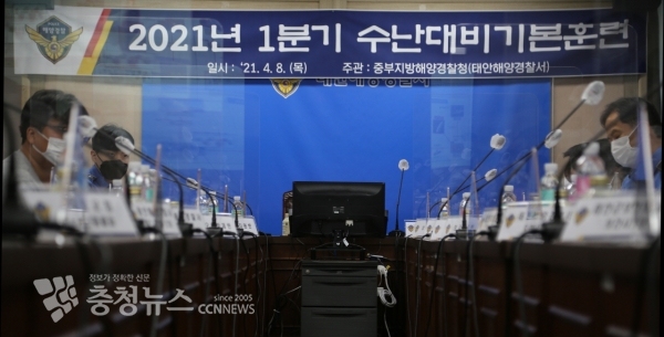 충남 태안해양경찰서(서장 성창현)는 봄철 각종 해양사고 대응 강화 일환으로 8일 청사내 회의실에서 중부지방청(구조안전과) 주관 수난대비 기본훈련을 실시했다.