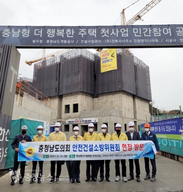 충남도의회 안전건설소방위원회(위원장 이계양)는 12일 아산시 배방읍에 건설하는 ‘충남형 더행복한주택 건설현장’과 당진 ‘기지시-한진간 지방도 확·포장 사업현장’을 방문해 애로사항을 청취하고 지원 방안을 모색했다.