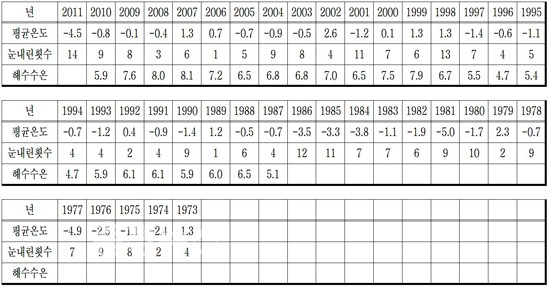 1월에 가장 따뜻했던 해는 2002년에 영상 2.6℃로 나타나 올해와 7.1℃가 차이가 났으며, 해수면 수온은 지난 2007년 영상 8.1℃로 올해와 3.2℃ 차이를 보였다.