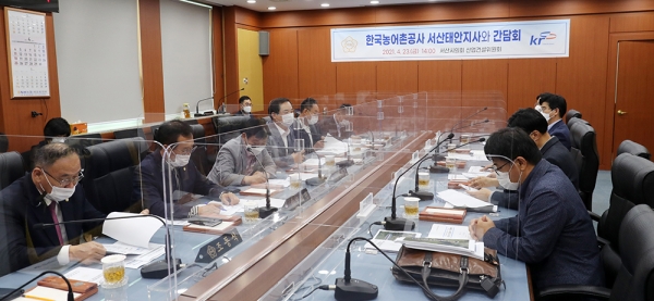서산시의회 산업건설위원회가 23일 한국농어촌공사 서산태안지사와 간담회를 개최했다.