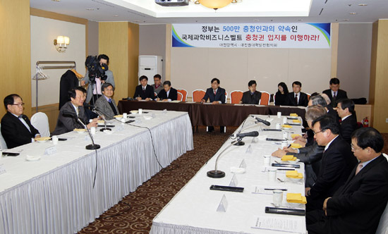또한 “과학벨트 입지는 지역문제 또는 정치적 좌우될 것이 아니라 국가의 미래 성장동력을 확보해야 하므로 가장 경쟁력이 높은 충청권에 조성하는 것이 순리임”을 강력히 주장했다.